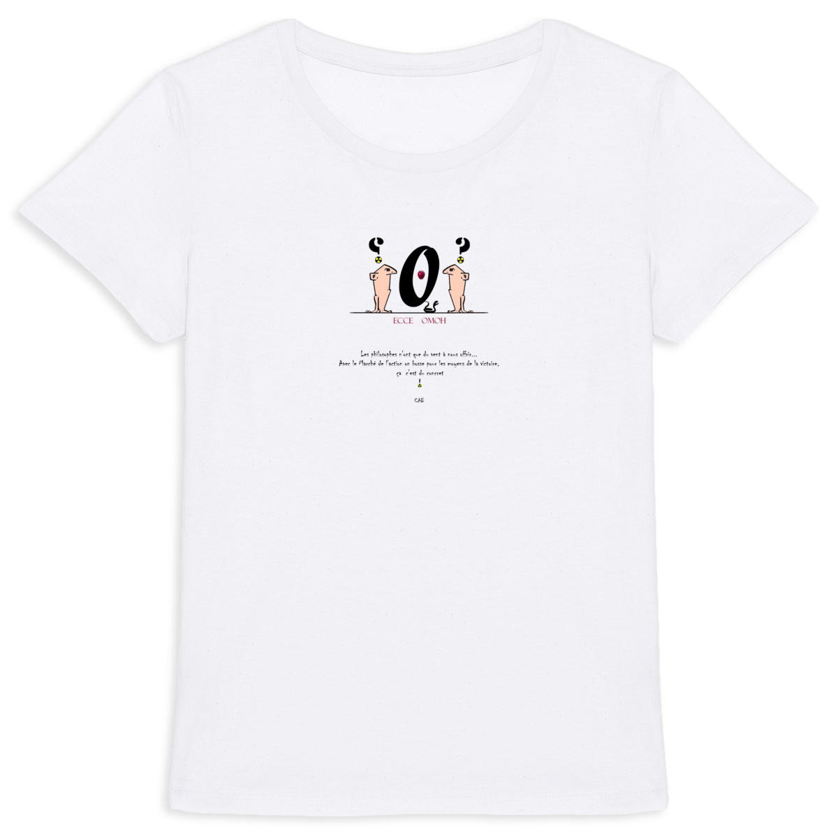 Sous la pomme : un tore dont la vue profilée fait apparaître la graphie du chiffre unique caractérisant la seule valeur non figurable et inatteignable... Le zéro !